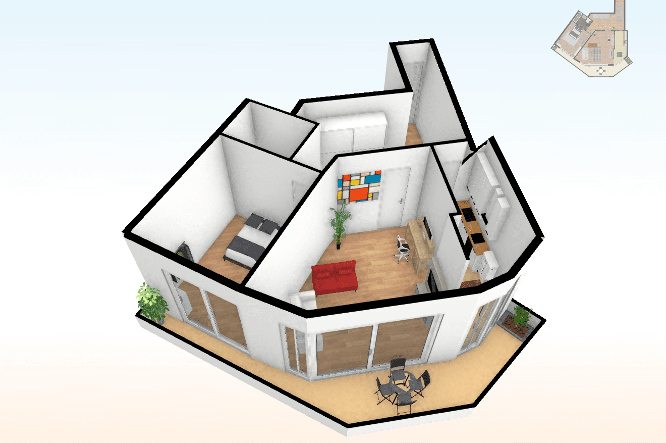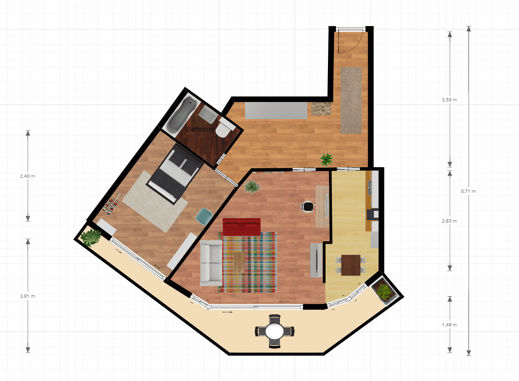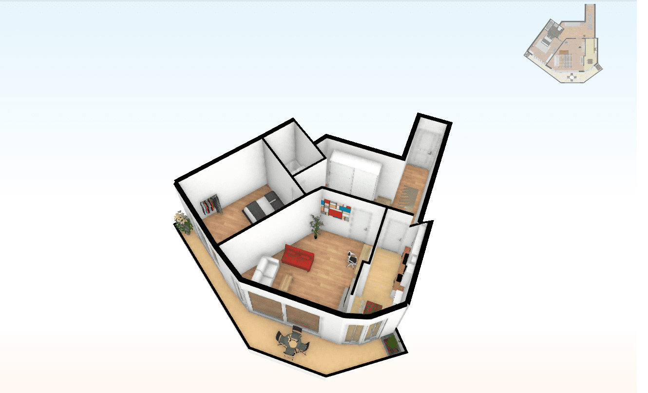 As soon as we had the flat plan, we started to make our own “draft” about how we would like to have it. We used a software called “floorplanner” (which is free and has a lot of ressources), and this was the result: